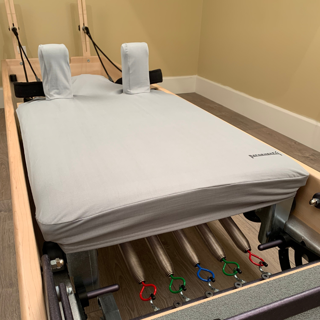 Everyone's neutral favorite - Slate Grey is perfect for the Pilates practitioner who is looking for understated elegance. Our silicon backing prevents slips, while our moisture-wicking and antibacterial fabric keeps you cool and protected from dirty Reformers. The “Universal ReformerFit” is designed to fit most Reformers, so you don't have to worry about which Reformer your studio uses!