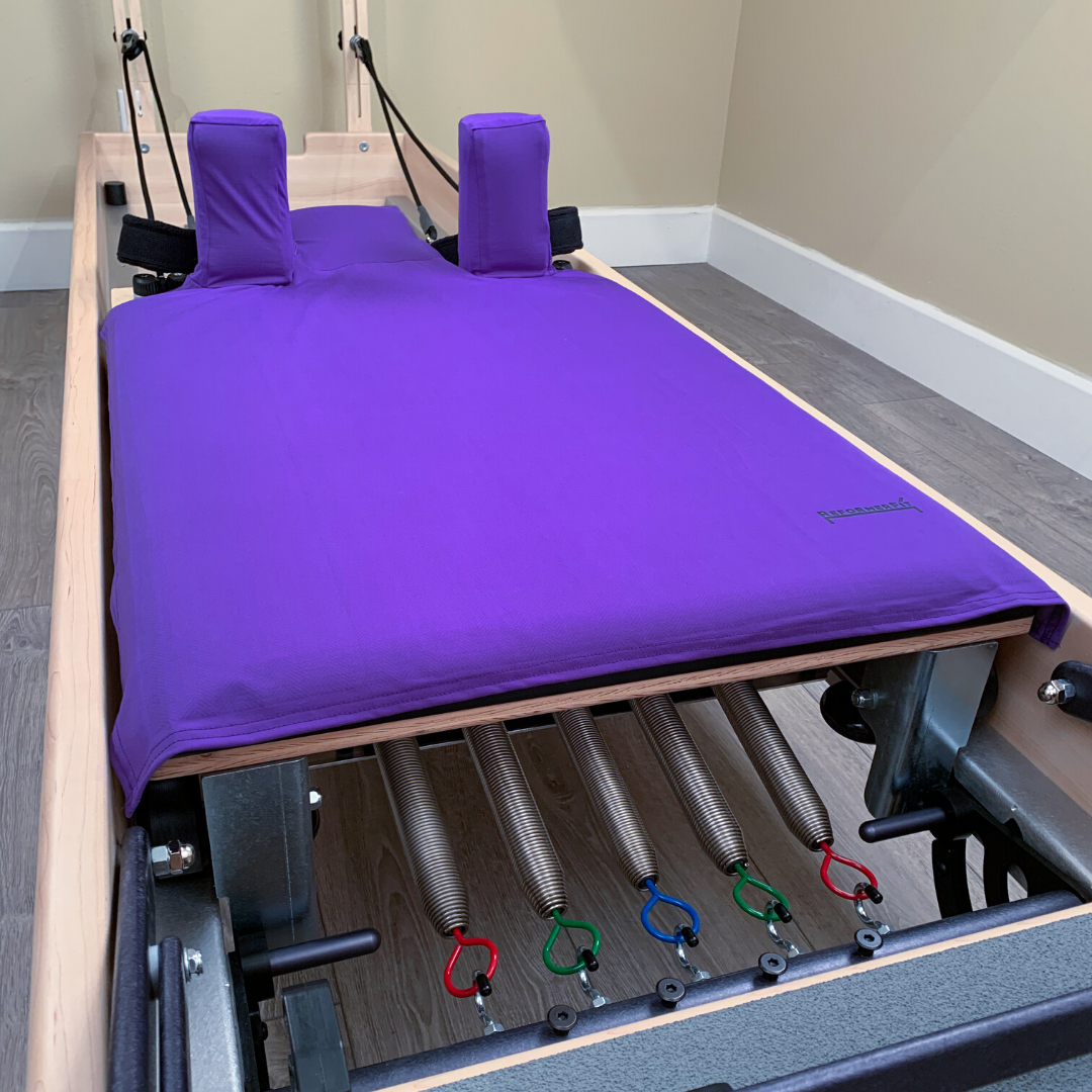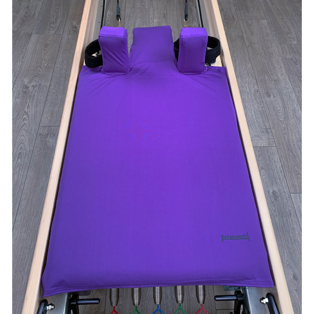 Our Ultra Violet ReformerFit cover brings a beautiful and relaxing deep purple to any of your Pilates workouts. The silicon backing prevents slips, while our moisture-wicking and antibacterial fabric keeps you cool and protected from dirty Reformers. The “Universal ReformerFit” is designed to fit most Reformers, so you don't have to worry about which Reformer your studio uses!